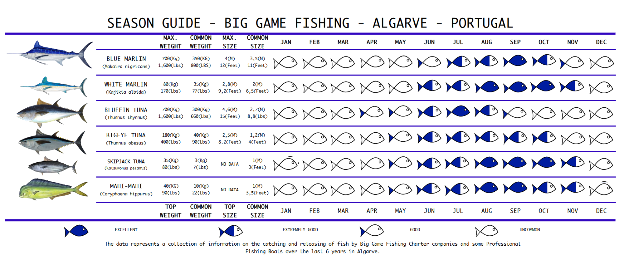 Discover the blue waters of Algarve coast up to 20 nautical miles offshore and see, catch, tag and release White Marlin. This trip will provide a lifetime experience you don’t want to miss!